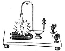 En 1821, après la découverte du phénomène de l'électromagnétisme par le chimiste danois Ørsted, le physicien anglais Michæl Faraday construit deux appareils pour produire ce qu'il nomma une rotation électromagnétique : le mouvement circulaire continu d'une force magnétique autour d'un fil, en fait la démonstration du premier moteur électrique. Le premier brevet N°391968 du moteur électrique actuel, à courant alternatif, est déposé par le physicien serbe Nikola Tesla en 1887.